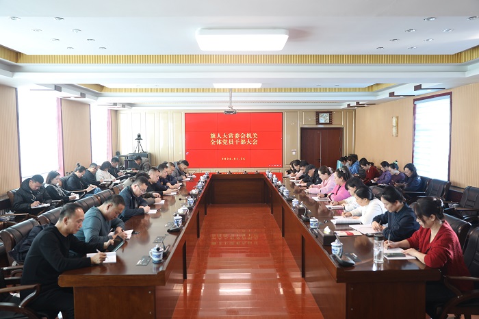 1月26日,旗人大常委会机关全体党员干部大会召开。旗人大常委会党组书记、主任吴青海主持会议并讲话,旗人大常委会副主任宝龙、李欣荣,机关党组书记、办公室主任贾宝武出席会议。