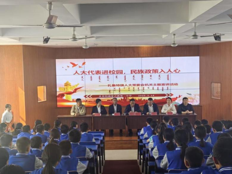 聚焦青少年群体思想引领,组织5名旗人大代表走进中小学,开展“人大代表进校园·民族政策入人心”主题宣讲活动,用通俗易懂的语言、鲜活生动的事例,向340余名学生深刻阐释铸牢中华民族共同体意识的重大意义,引导青少年树立正确的国家观、历史观、民族观、文化观、宗教观,争做民族团结的小小践行者,活动现场发放《内蒙古自治区全方位建设模范自治区促进条例》及民族政策应知应会手册1300余份。同时,依托“人大代表示范岗”、代表履职活动等载体,深入社区、学校广泛发放条例及民族团结知识宣传单1200余份,持续扩大政策法规宣传覆盖面,推动“三个离不开”“四个与共”“五个认同”思想在各族群众心中深深扎根。