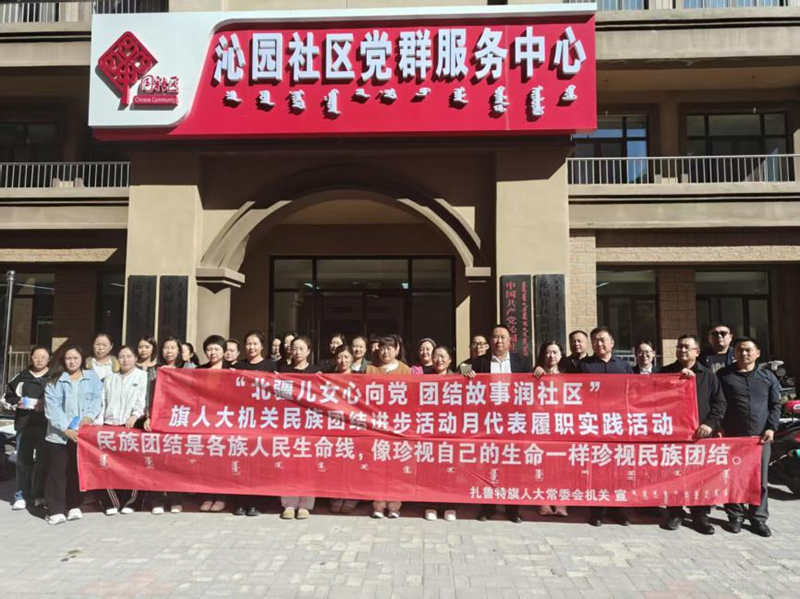 旗人大常委会始终把宣传教育作为基础性、长期性工作,多形式、全覆盖开展民族政策法规宣传,推动铸牢中华民族共同体意识入脑入心。结合民族团结进步“一周两月”重要节点,精心组织“北疆儿女心向党·团结故事润社区”代表履职实践活动,邀请旗人大代表结合亲身感悟,为社区党员、志愿者深情讲述《三千孤儿入内蒙》《草原上的马背法官——那顺乌日塔》等感人至深的民族团结故事,用身边事教育身边人,激发各族群众守望相助、团结奋斗的情感共鸣,厚植家国情怀。