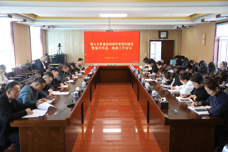 会议深入学习习近平总书记关于党的建设的重要思想、习近平总书记关于意识形态工作和网络意识形态工作的重要论述、习近平总书记关于铸牢中华民族共同体意识的重要论述;全面总结了旗人大常委会机关2025年度党的建设、意识形态、统战工作成效,分析研判了2026年第一季度意识形态领域态势,并对下一阶段各项重点工作进行安排部署。