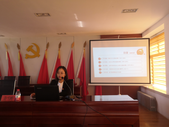 会上,许雪婷老师以《新中国的发展历程与启示——“四史”学习教育》为主题,从“开天辟地:新民主主义革命时期”、“改天换地:社会主义革命和建设时期”、“翻天覆地:改革开放和社会主义现代化建设时期”、“惊天动地:中国特色社会主义进入新时代”、“宝贵经验:新中国发展的启示与总结”五个篇章做了精彩的宣讲,让大家重温了党领导全国各族人民进行艰苦卓绝的奋斗和波澜壮阔的建设历程,内容深刻、发人深省。
