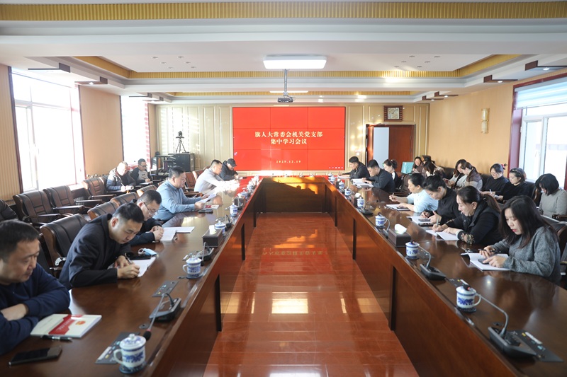 12月19日,旗人大常委会机关党支部组织党员干部集中学习了习近平总书记在中央经济工作会议上的重要讲话和会议精神、习近平总书记对未成年人思想道德建设作出的重要指示精神和《中华人民共和国反电信网络诈骗法》。旗人大常委会机关党支部书记、办公室主任贾宝武主持会议并领学。