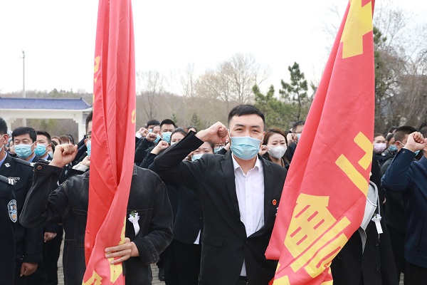 凭吊先辈英魂,传承红色基因。活动中,机关全体党员干部举起右手,庄严重温入党誓词。