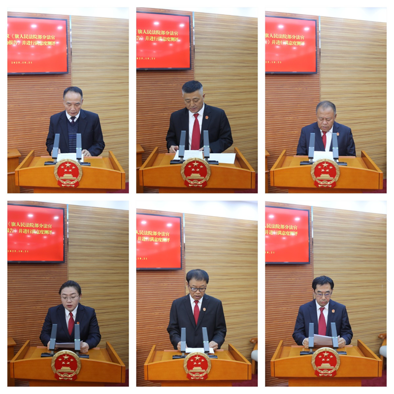 会议听取和审议了旗人大常委会法官评议领导小组《关于对旗人民法院部分法官履职评议工作情况的报告》;听取和审议了《旗人民法院部分法官履职情况的报告》,并进行了满意度测评;对部分法官履职情况的评议意见(草案)进行了表决;听取了部分旗人民政府组成部门负责人述职报告。