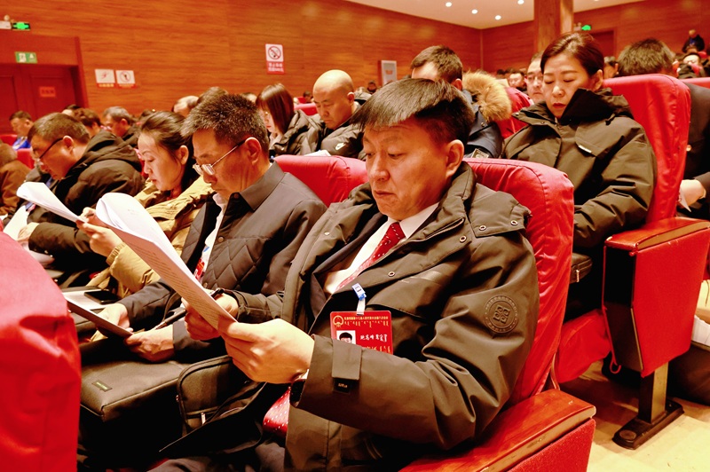 杨子强、张大鹏、杨会敏、索明雨、吴美容、崔雷雷、郭雅峰、于凌浩、于海宝、郝建华、单华齐、张立国、王赫、孟根花、伍晓、戴宝林、王成、乔玉春、通拉嘎、曲叶红、薄世元、贾宝武及大会主席团成员在主席台上就座。