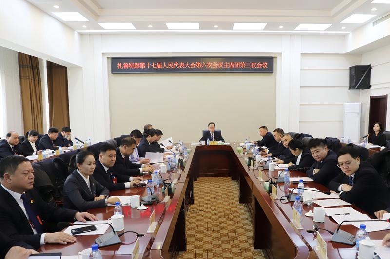 3月2日下午,扎鲁特旗第十七届人民代表大会第六次会议主席团举行第三次会议。旗委书记邵彦军主持会议。