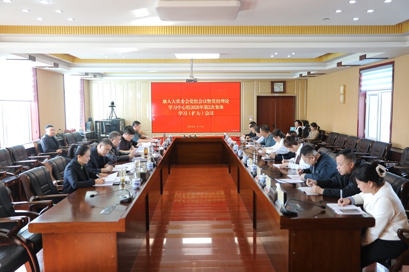 3月11日,旗人大常委会党组会议暨党组理论学习中心组2026年第二次集体学习(扩大)会议召开。旗人大常委会党组书记、主任吴青海主持并讲话。旗人大常委会党组成员、副主任宝龙、杨振清、李欣荣,党组成员、办公室主任贾宝武出席会议。旗人大常委会副主任张永强,机关党组成员及副科级以上干部列席会议。
