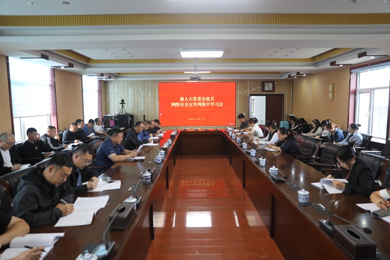 9月17日下午,旗人大常委会机关组织干部职工召开国家网络安全宣传周集中学习会。旗人大常委会机关党组书记、办公室主任贾宝武主持会议。